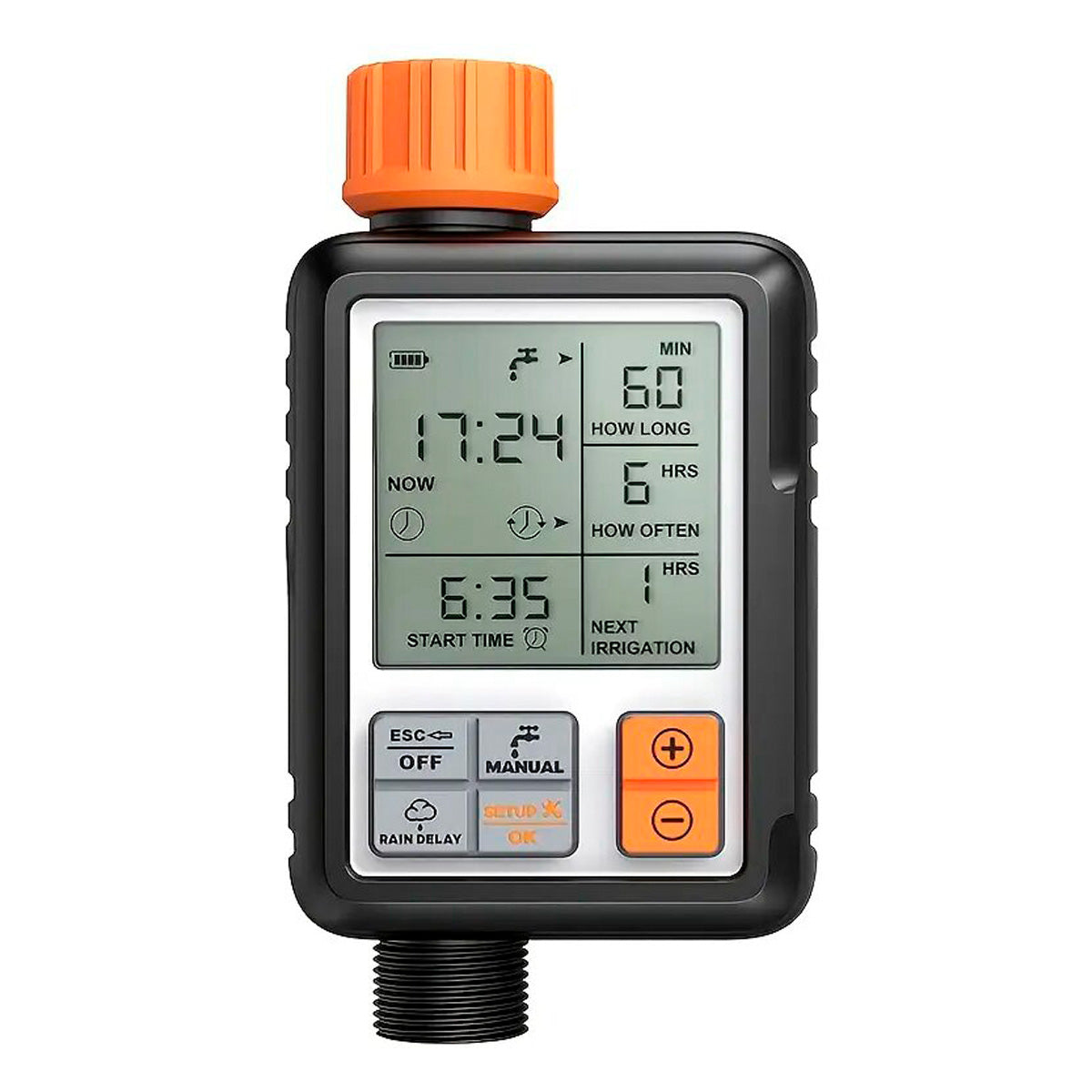- Duración del riego: se puede configurar para que sea de 1 segundo a 300 minutos.